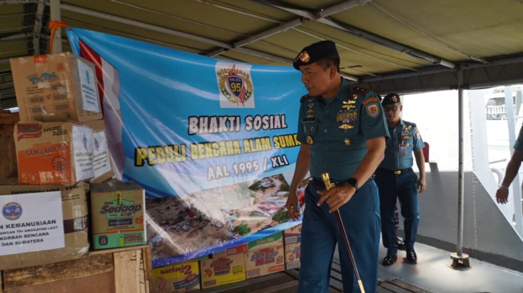 Inpost-news.com TNI AL. Koarmada II. 22 Desember 2025. Sebagai wujud kepedulian dan solidaritas kemanusiaan, Alumni Akademi Angkatan Laut (AAL) Angkatan XLI/1995 menyalurkan bantuan bagi masyarakat terdampak bencana di wilayah Aceh dan Sumatera. Bantuan tersebut disalurkan melalui KRI Teluk Banten-516, yang dilepas keberangkatannya oleh Pangkoarmada II Laksda TNI I G.P. Alit Jaya, S.H., M.Si., pada Senin (22/12) di Dermaga E Koarmada II, Ujung Surabaya.