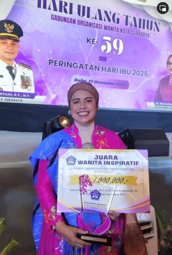 Surabaya, Inpost News — Prestasi membanggakan kembali ditorehkan sivitas akademika Universitas Hang Tuah (UHT). Salah satu dosen Fakultas Kedokteran Gigi (FKG) UHT, Dr. Nora Lelyana, drg., M.HKes., FICD, berhasil meraih Penghargaan Wanita Inspiratif Bidang Kepemimpinan dan Pengabdian kepada Masyarakat dalam rangka Hari Ulang Tahun (HUT) ke-59 Gabungan Organisasi Wanita (GOW) Kota Surabaya sekaligus Peringatan Hari Ibu 2025.